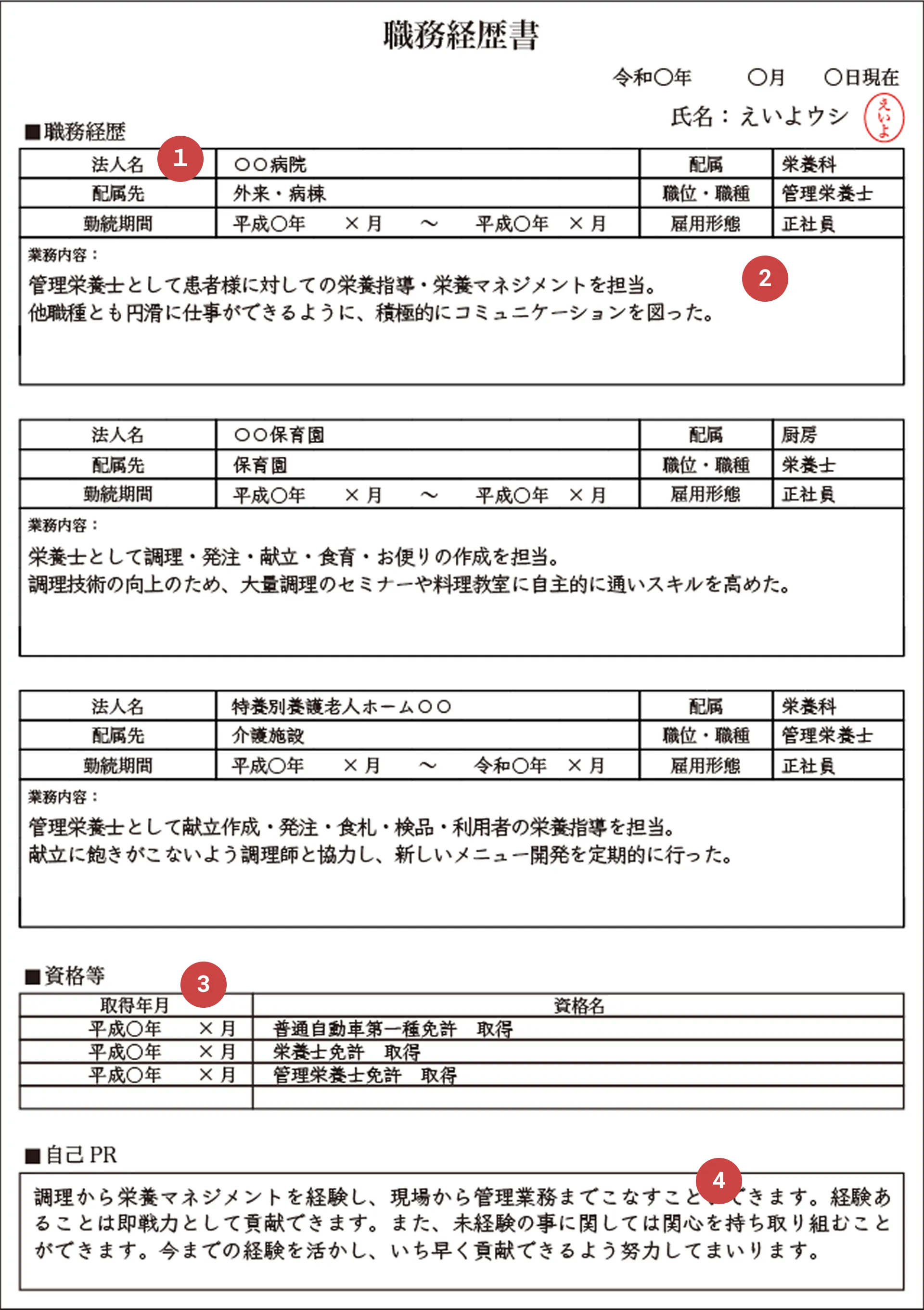 栄養士の職務経歴書ってどうやって書けばいいの?